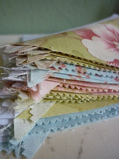 It's easy to use precuts, but that's also the part that I'm not liking so much. There's a thrill in taking a fabric that you absolutely love and going out to find just the right fabrics to match it. Using precuts you know in advance that all the fabrics will go together. But I like the anticipation of cutting up fabrics I pulled together myself and keeping all my fingers crossed to see if they look as good all grouped together as I thought they would in my head. {I don't have one of those fancy computer designing programs, so apart from some sketches it's all in my head}