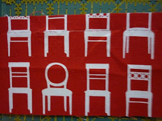 I've appliqued all the black 'ravens' now {I'm not much of a birdwatcher so I can't be certain these qualify to be called ravens, but it is what I'm calling them!} I chose to go for raw edge applique this time, instead of the needleturn applique I did with the pillows. Much easier and quicker!